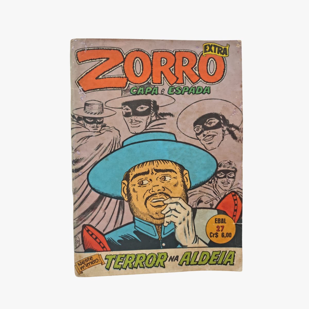 Se você é fã de histórias clássicas com suspense, Zorro Extra nº 27 – Terror na Aldeia é uma edição que merece espaço na sua coleção. Publicado pela editora EBLA, esse gibi traz uma narrativa envolvente e misteriosa, com o herói mascarado enfrentando desafios intensos em um cenário cheio de tensão.